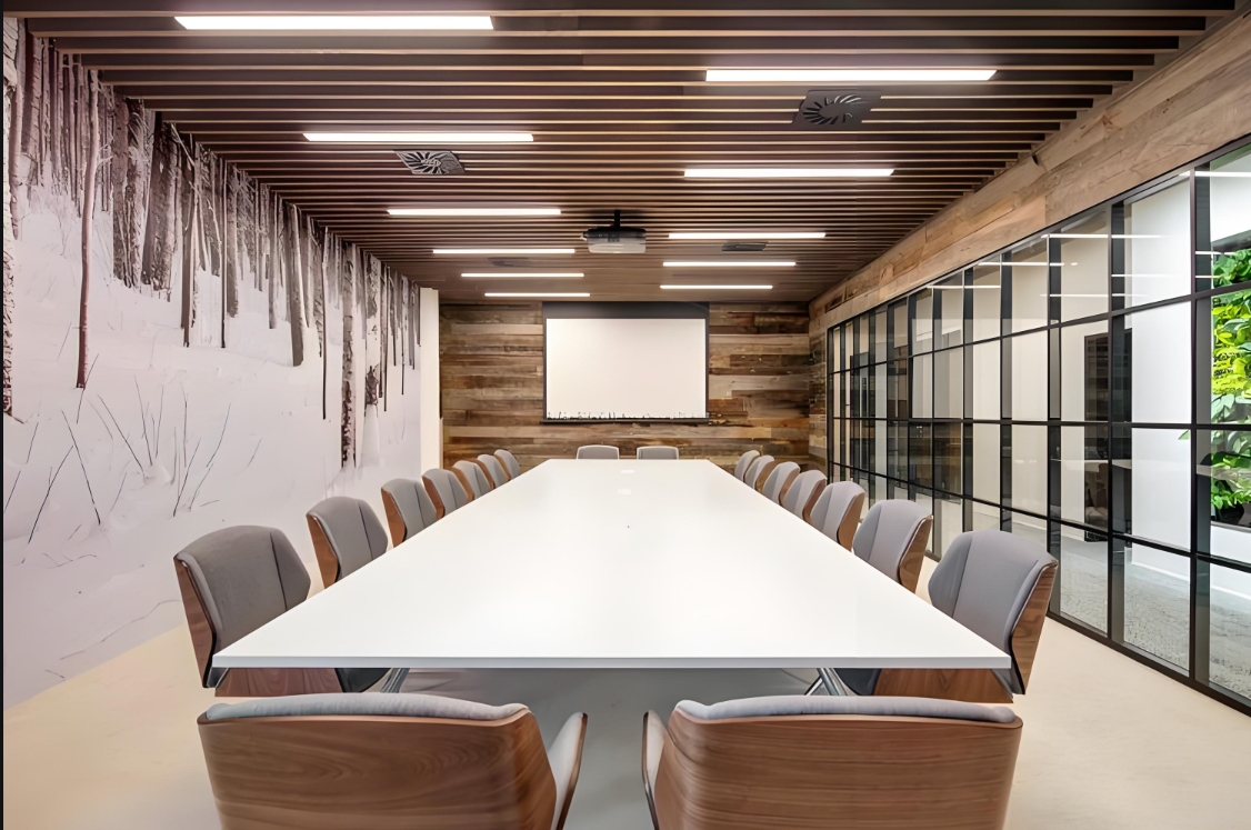 裝飾板吊頂采用各種木質(zhì)或合成材料制成,具有豐富的紋理和色彩。在中式風(fēng)格辦公室和老板辦公室裝修中,裝飾板吊頂能夠體現(xiàn)出原生、自然和古典的風(fēng)格特點(diǎn)。裝飾板吊頂不僅具有裝飾性,還具有一定的隔音和隔熱性能,為辦公室營造一個溫馨舒適的氛圍。